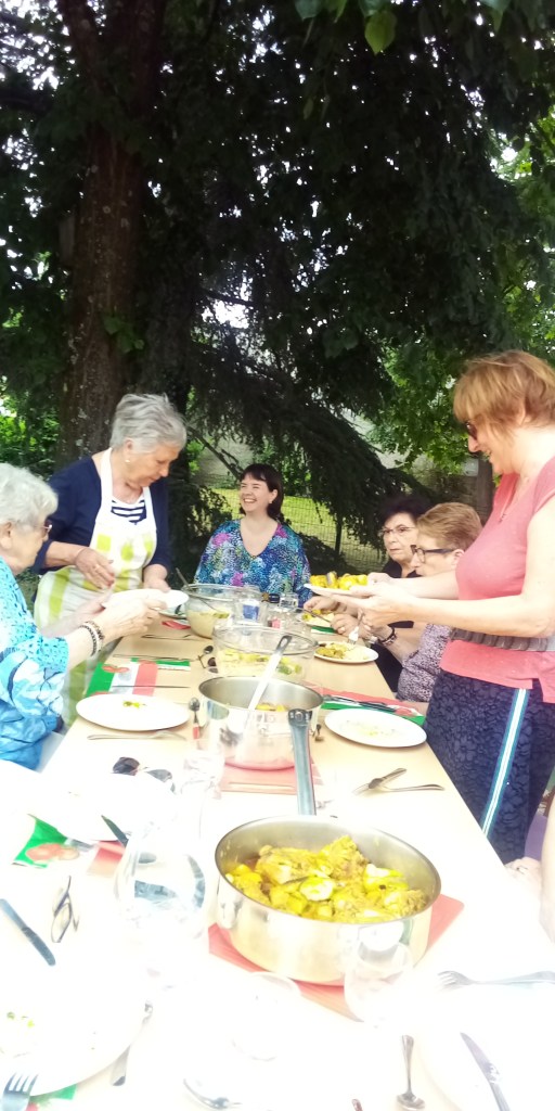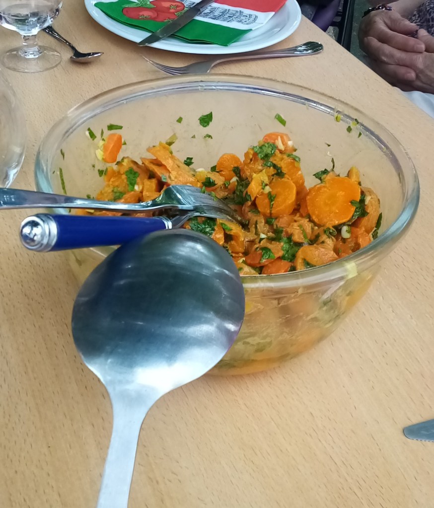 Les vendredis 13 mai et 3 juin 2022, 8 femmes en cuisine ont participé à « échangeons nos savoirs »! Pour élaborer ensemble un repas marocain et un repas estival, avec les conseils et astuces d’Yvette et Marinette. Une préparation rythmée, une dégustation agréable dans le jardin du centre social. Merci à vous mesdames et à la participation de Michel !