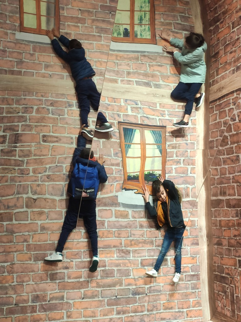Les enfants de l’activité « Jouer avec le Français » sont allés ce mercredi 23 Novembre au Musée de l’Illusion. Ces enfants qui sont en cours d’acquisition de la langue française ont fait face à d’étranges tableaux aux perspectives surprenantes, à des miroirs déformants et à des hologrammes amusants. Ils ont traversé la salle renversée, inclinée et le tunnel vortex sans encombres mais avec plein de souvenirs.
