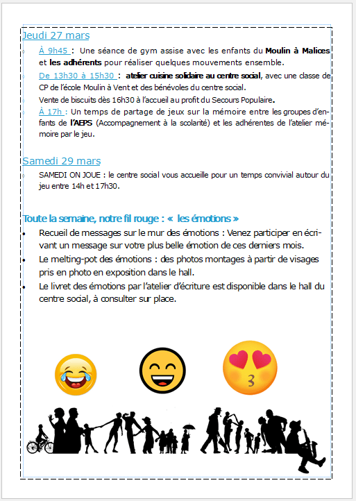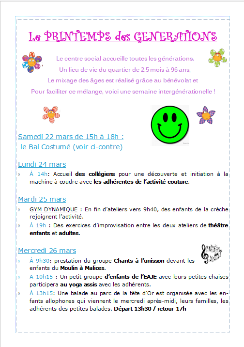 Printemps des générations Publié parcentresocial MAV4 mars 2025Publié dans• Adultes - Familles, • Enfance - Jeunesse, • Temps forts à venir Partager : Cliquer pour partager sur X(ouvre dans une nouvelle fenêtre) X Cliquez pour partager sur Facebook(ouvre dans une nouvelle fenêtre) Facebook J’aime chargement… Similaire
