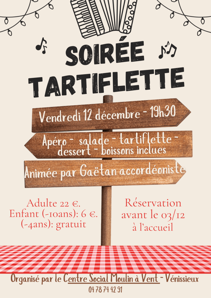La soirée tartiflette fait son retour le vendredi 12 décembre à 19h30.